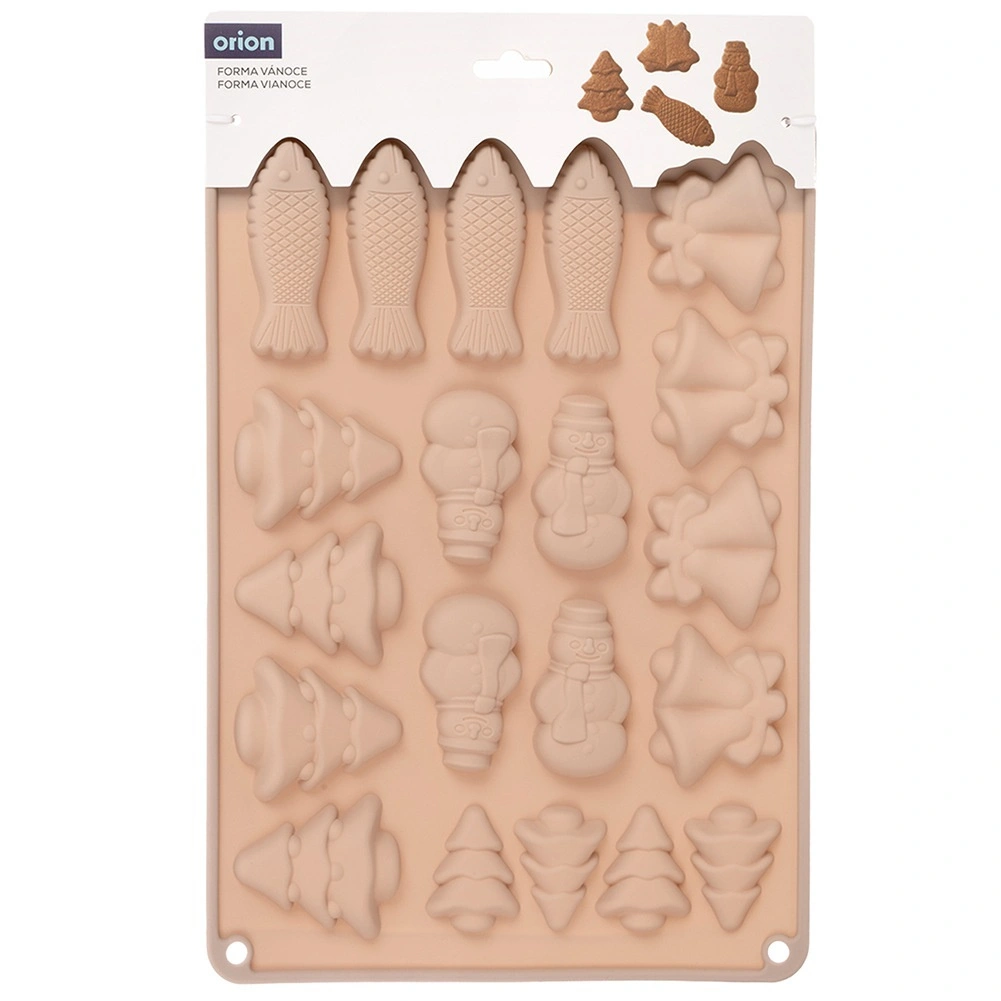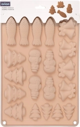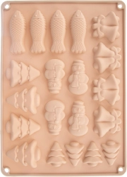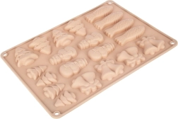 Ta beżowa silikonowa forma o wymiarach 34 × 24,5 × 1 cm jest idealna do przygotowywania świątecznych ciasteczek, pierniczków, czekoladek i pralinek. Wysokiej jakości silikon gwarantuje łatwe wyjmowanie bez przywierania oraz równomierne wypieczenie lub stężenie. Z jednej porcji przygotujesz do 20 sztuk w 5 różnych kształtach.