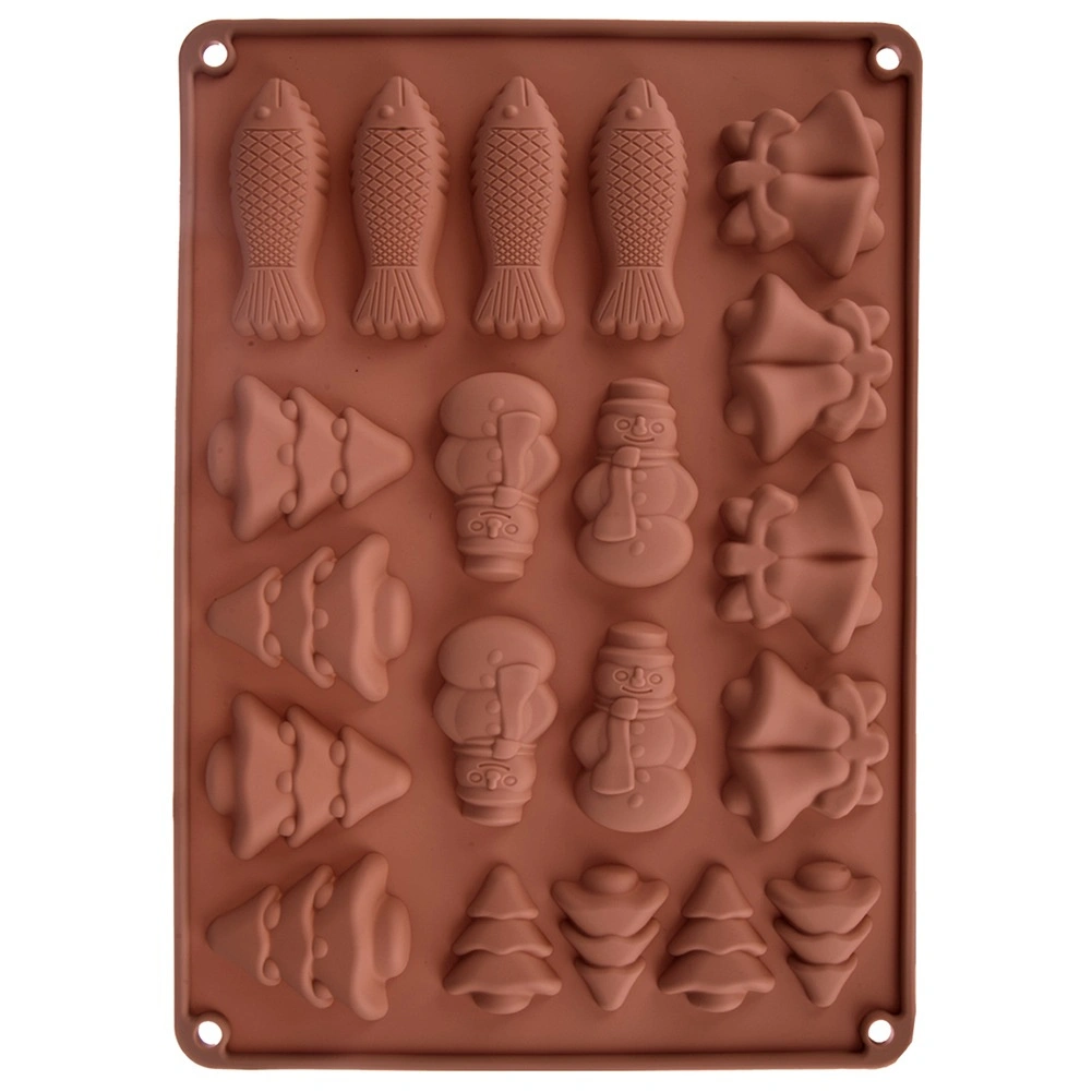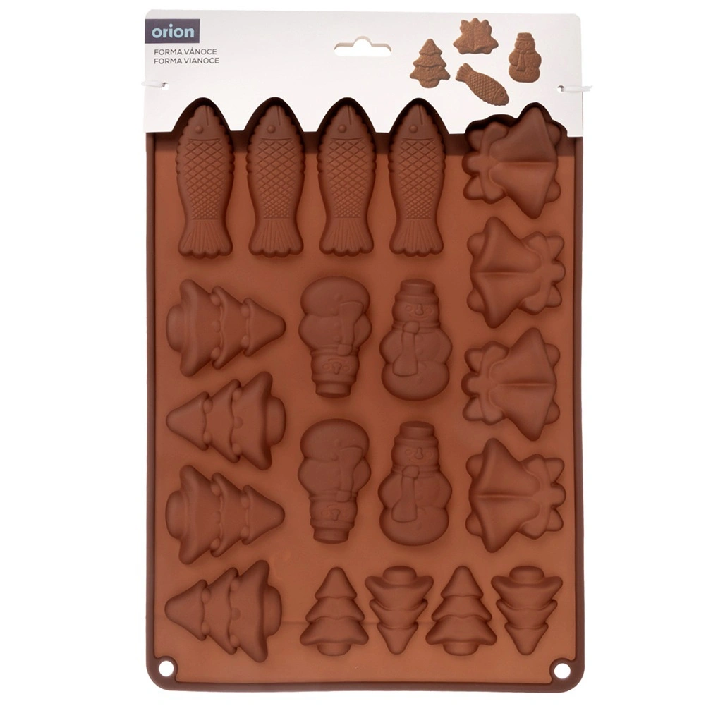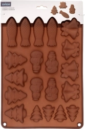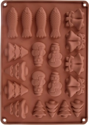 Praktyczna silikonowa forma do łatwego pieczenia i odlewania czekolady w zimowych motywach. Dzięki 20 wgłębieniom jednocześnie przygotujesz słodkości w pięciu kształtach – choinka, bałwan (bałwanek), dzwonek i ryba. Materiał jest nieprzywierający, elastyczny i odporny na temperatury od -40 do +200 °C, odpowiedni do piekarnika, mikrofalówki i zamrażarki, a także nadaje się do mycia w zmywarce.