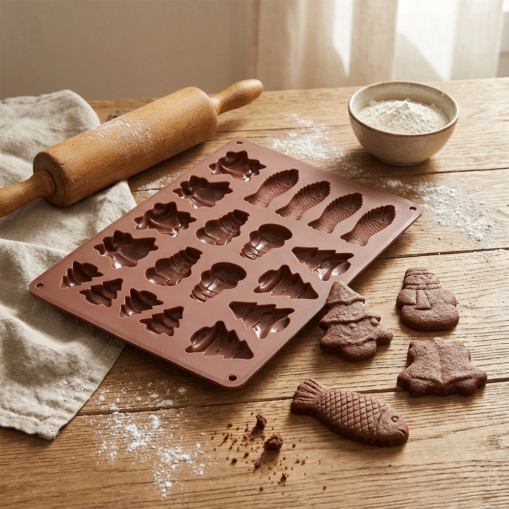 Ta brązowa silikonowa forma jest idealna do przygotowania kruchych ciastek, pierniczków, pralin oraz domowych czekoladek. Dzięki elastycznej, nieprzywierającej powierzchni gotowe wyroby łatwo się wyjmuje bez konieczności smarowania czy podsypywania mąką. Forma nie pochłania zapachów ani smaków i oszczędza miejsce w kuchni.