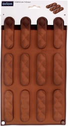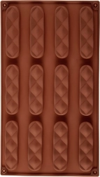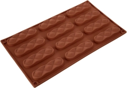 Forma ma dwanaście podłużnych wgłębień z dekoracyjnym wzorem, dzięki którym w jednej partii przygotujesz jednolite i estetyczne ciastka lub praliny.