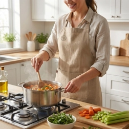 Uniwersalny krój i przyjemny, naturalny materiał gwarantują komfort podczas codziennego gotowania, pieczenia i kreatywnych prac. Łatwa pielęgnacja – pranie do 40 °C – ułatwia długotrwałe użytkowanie i utrzymanie czystości.