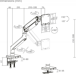 Zintegrowany mechanizm napinania sprężyny utrzymuje monitor dokładnie w potrzebnej pozycji – bez opadania czy podnoszenia i bez wysiłku podczas regulacji.