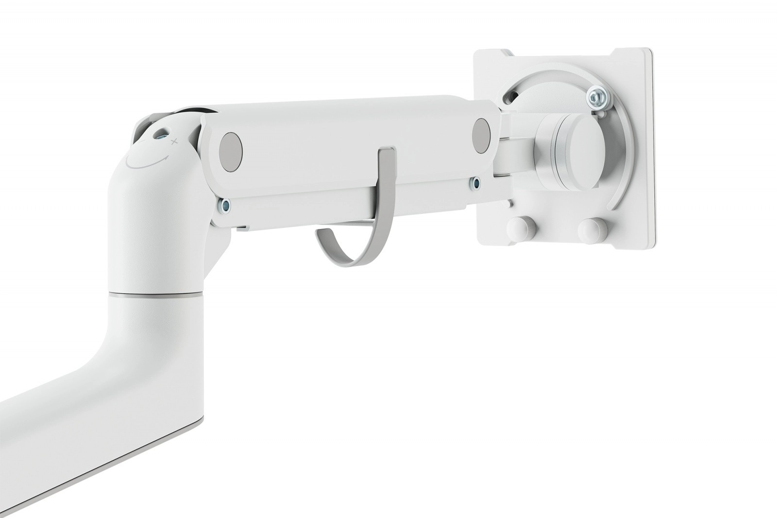 Zintegrowana sprężyna gazowa z regulowanym napięciem równoważy ciężar monitora i umożliwia płynne, precyzyjne i bezwysiłkowe pozycjonowanie.