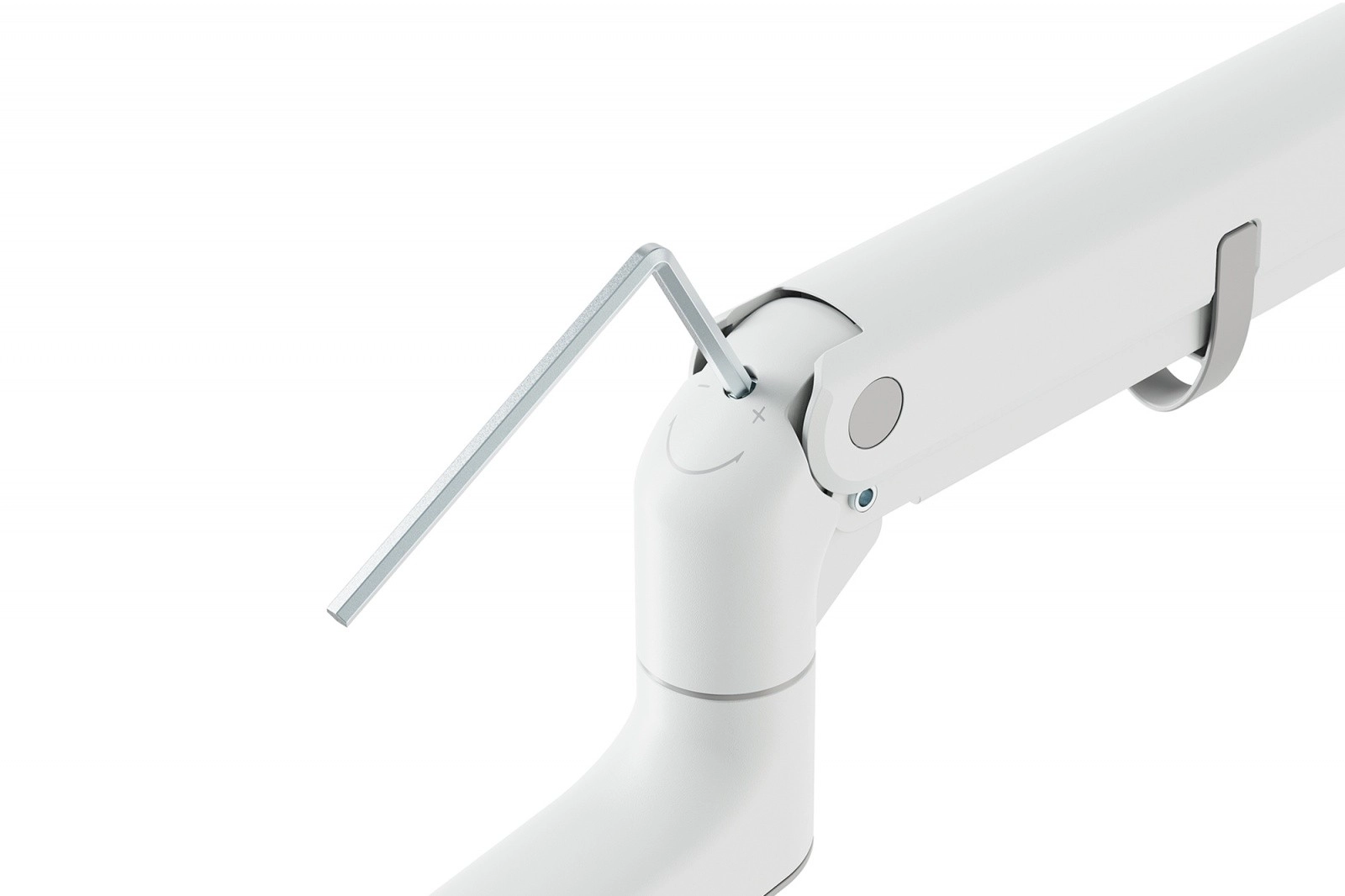 Szeroki zakres ruchu zapewnia idealny kąt pochyłu, obrotu i wysokość. Kable ukryjesz w prowadzeniu w ramieniu, zwalniając miejsce na biurku.