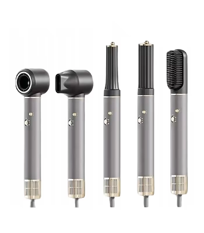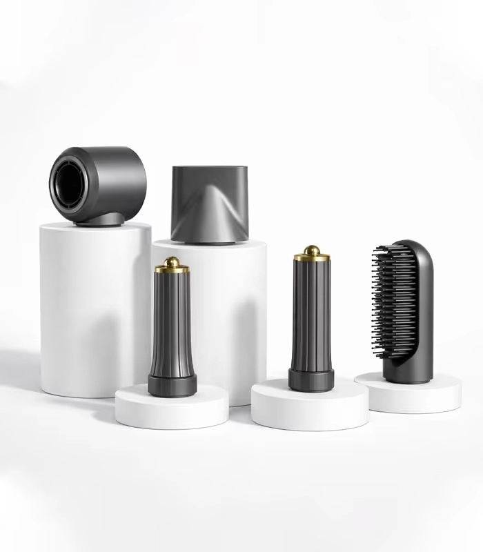 Wymienne nasadki pozwalają szybko przełączać się między suszeniem, prostowaniem, dodawaniem objętości oraz tworzeniem fal i loków — bez potrzeby użycia wielu urządzeń.