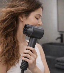 Wydajny silnik BLDC 100 000 obr./min zapewnia silny i równomierny przepływ powietrza dla szybszego suszenia. Zimny nawiew pomaga domknąć łuski włosa i utrwalić kształt. Praktyczny czujnik odległości zwiększa wygodę i bezpieczeństwo użytkowania.