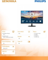 Monitor Philips 32" oferuje komfortowy ekran do multitaskingu, arkuszy i filmów. Technologia VA gwarantuje wierne kolory i wyrazistą czerń, a częstotliwość odświeżania 75 Hz dodaje obrazowi płynności w porównaniu ze standardowymi panelami 60 Hz. Cienkie ramki wyglądają nowocześnie i oszczędzają miejsce na biurku.