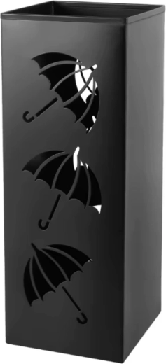 Elegancki i praktyczny stojak na parasole z wysokiej jakości stali węglowej w matowym czarnym kolorze. Nowoczesne otwory wentylacyjne w kształcie parasoli zapewniają lepszą cyrkulację powietrza dla szybszego schnięcia. Idealny do przedpokoju, biura, recepcji czy poczekalni – wytrzymały, stabilny i łatwy w utrzymaniu.