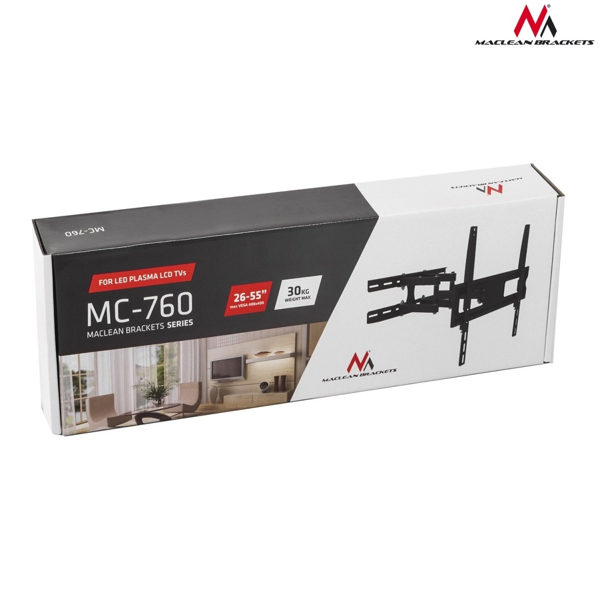Uniwersalny uchwyt ścienny do telewizorów i monitorów o przekątnej 26–55" i wadze do 30 kg. Solidna metalowa konstrukcja z maksymalnym wsparciem VESA 400×400 oraz wysokiej jakości malowaniem proszkowym w czarnym kolorze zapewnia stabilny i bezpieczny montaż dla marek takich jak SONY, LG, SAMSUNG, PHILIPS, PANASONIC i innych.