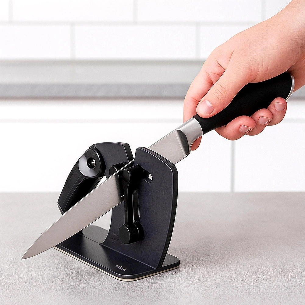 Ręczna ostrzałka do noży 2w1 z automatycznym kątem ostrzenia zapewnia szybkie, bezpieczne i równomierne ostrzenie gładkich oraz ząbkowanych krawędzi. Dzięki automatycznemu dopasowaniu kąta 22°–46°, stabilnej, antypoślizgowej podstawie i dwóm trybom ostrzenia łatwo przywrócisz ostrość nożom kuchennym w domu i gastronomii.