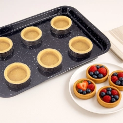 Solidna konstrukcja ze stali nierdzewnej gwarantuje długą żywotność, odporność na wysokie temperatury oraz stabilny kształt podczas pieczenia. Po użyciu wystarczy włożyć je do zmywarki. Zestaw doskonały do przygotowania słodkich deserów i wytrawnych mini tart.