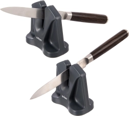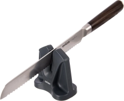 Praktyczna ostrzałka 2w1 została zaprojektowana do codziennej pielęgnacji noży kuchennych. Umożliwia łatwe i delikatne ostrzenie klasycznych gładkich ostrzy, noży do pieczywa oraz nożyczek. Automatycznie prowadzony kąt ostrzenia pomaga osiągać spójne wyniki bez potrzeby regulacji czy specjalnych umiejętności.