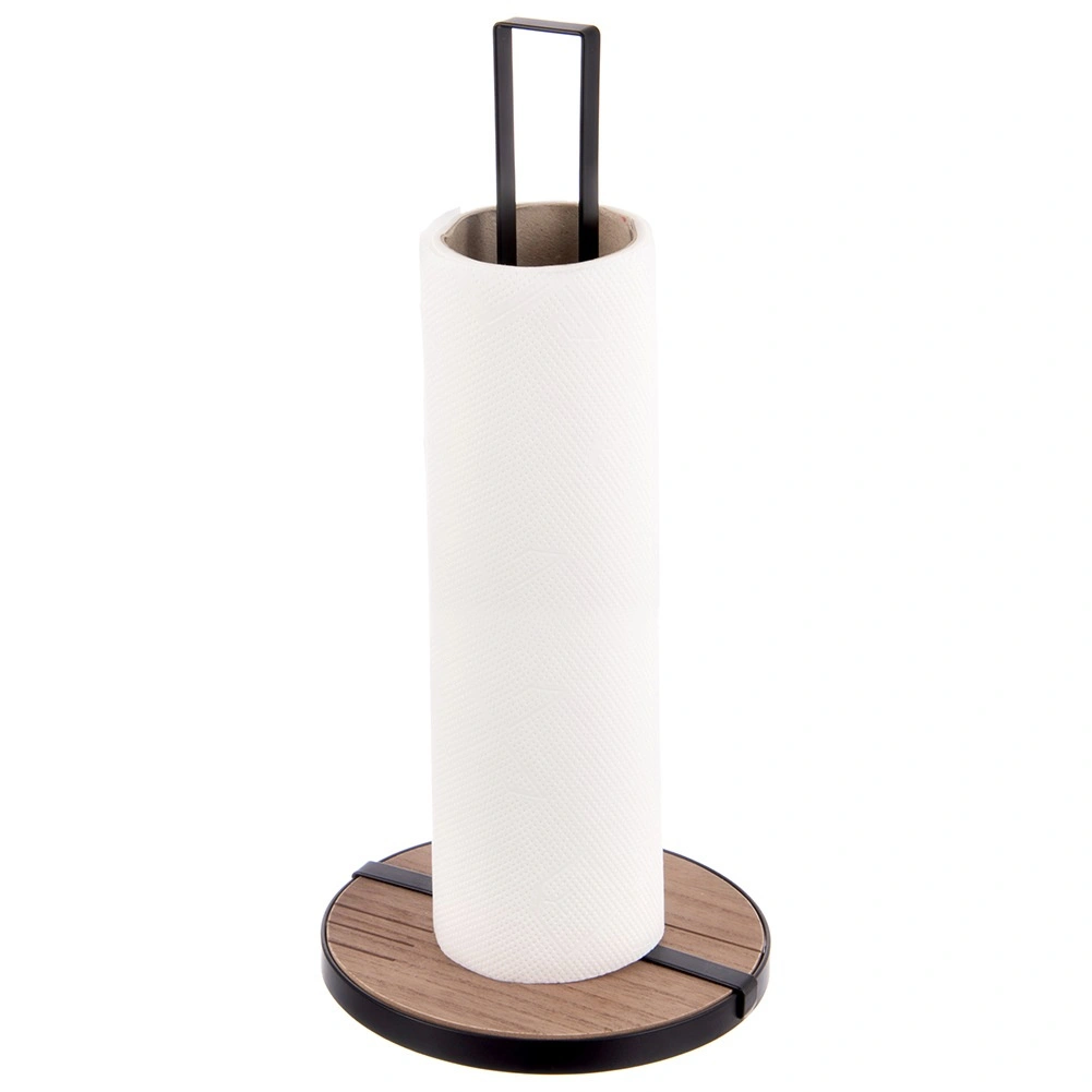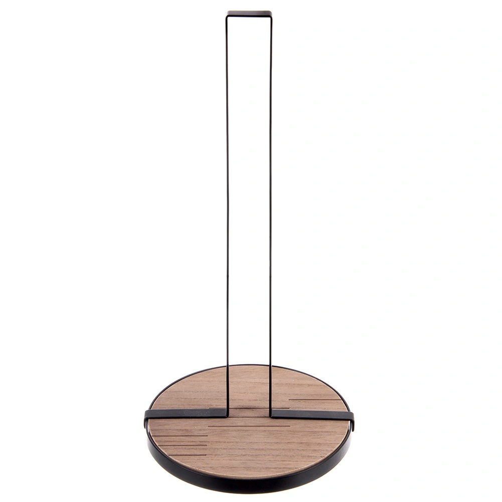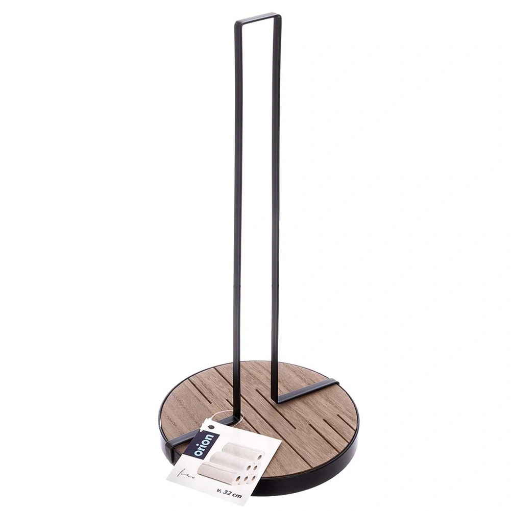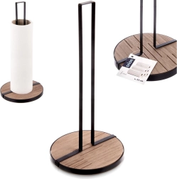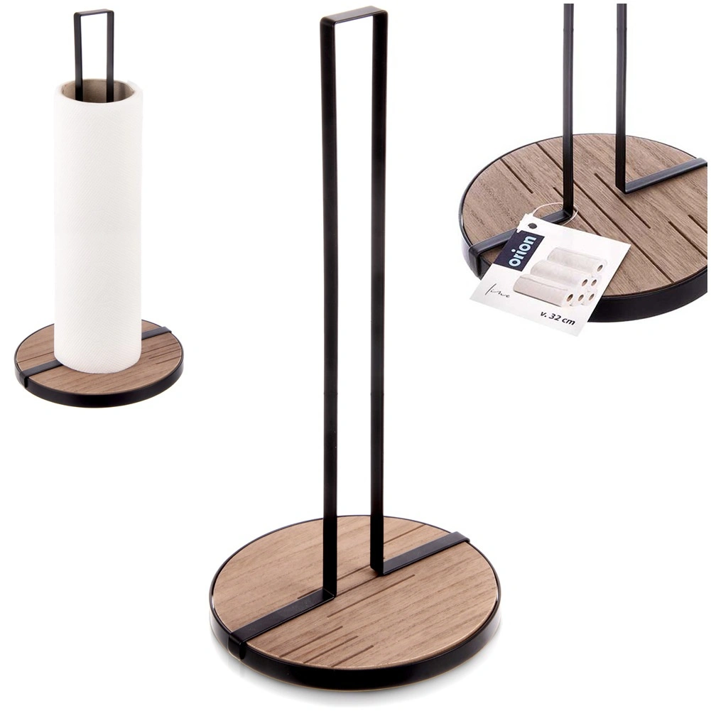 Stojak na ręczniki papierowe LINE o wymiarach 15,5 × 15,5 × 32,5 cm to praktyczny pomocnik do codziennego gotowania i sprzątania. Solidna metalowa konstrukcja w czarnym kolorze oraz okrągła drewniana podstawa z MDF zapewniają doskonałą stabilność i długą żywotność.