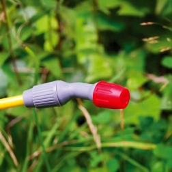 Długi wąż i lanca ułatwiają oprysk pod liśćmi, wokół pni oraz na wyższych poziomach rabat.