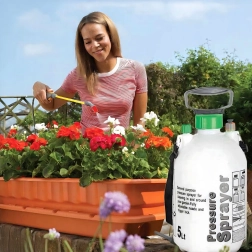 Ten ciśnieniowy opryskiwacz o pojemności 5 l ułatwi pielęgnację roślin, aplikację nawozów i środków ochrony roślin, a także delikatne mycie i porządki wokół domu. Przezroczysty zbiornik ze skalą umożliwia kontrolę poziomu, a regulowana dysza zapewnia zakres od delikatnej mgiełki po skoncentrowany strumień.