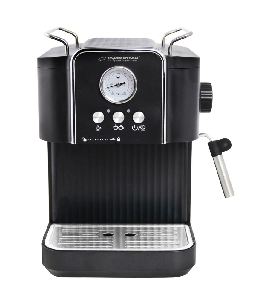 Kompaktowy i elegancki ekspres Esperanza EXCELSA łączy szybką przygotowę espresso z funkcjami do doskonałych mlecznych specjałów. Dzięki pompie o ciśnieniu 20 bar uzyskasz stabilną ekstrakcję i pełne body kawy, a dysza pary wyczaruje delikatnie kremową piankę do cappuccino lub latte.