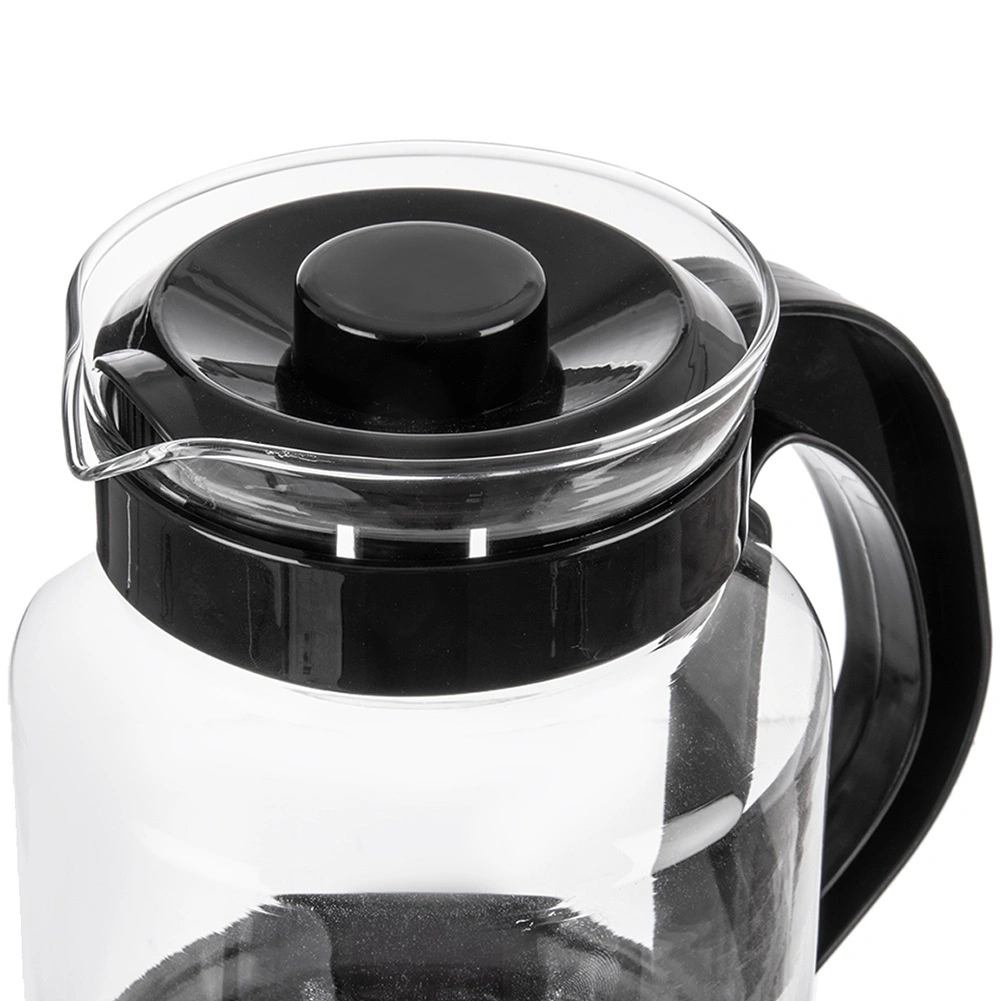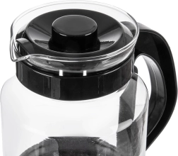 Uniwersalny szklany dzbanek o pojemności 2,25 l do wygodnego przygotowywania i serwowania herbaty, kawy oraz zimnych napojów. Wykonany z wytrzymałego szkła borokrzemowego z czarną pokrywką i ergonomicznym uchem dla bezpiecznego nalewania. Wysoka odporność na temperaturę, praktyczna wylewka oraz pokrywka utrzymująca świeżość czynią ten dzbanek doskonałym wyborem do codziennego użytku w domu i w biurze.