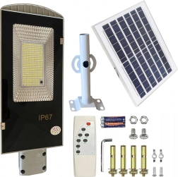 Solarna lampa uliczna na słup łączy wysoki strumień świetlny z bezobsługową pracą. Dzięki 247 LED tworzy jasne i równomierne światło, które zwiększa bezpieczeństwo i komfort poruszania się po zmroku. Zintegrowany panel solarny w ciągu dnia ładuje wbudowany akumulator, a wieczorem automatycznie się włącza.