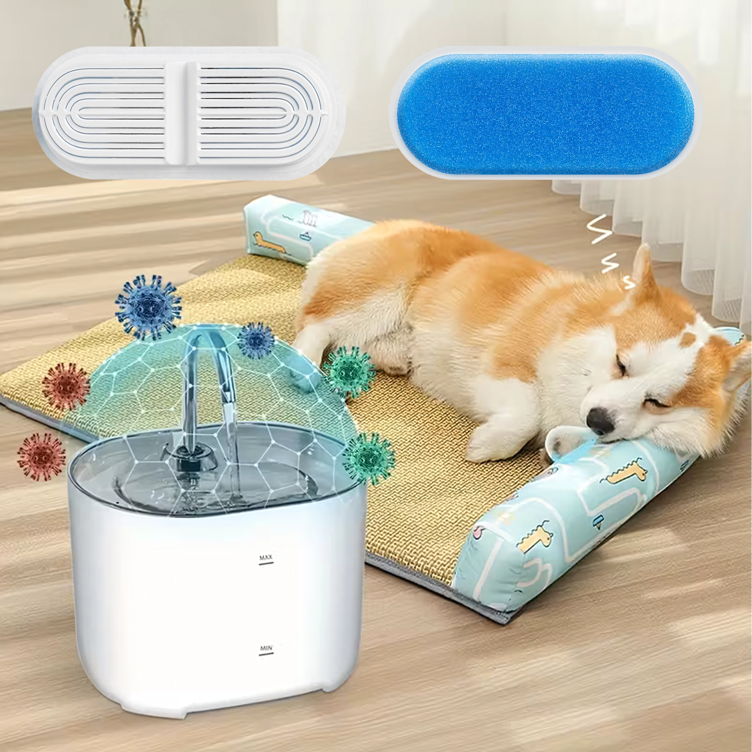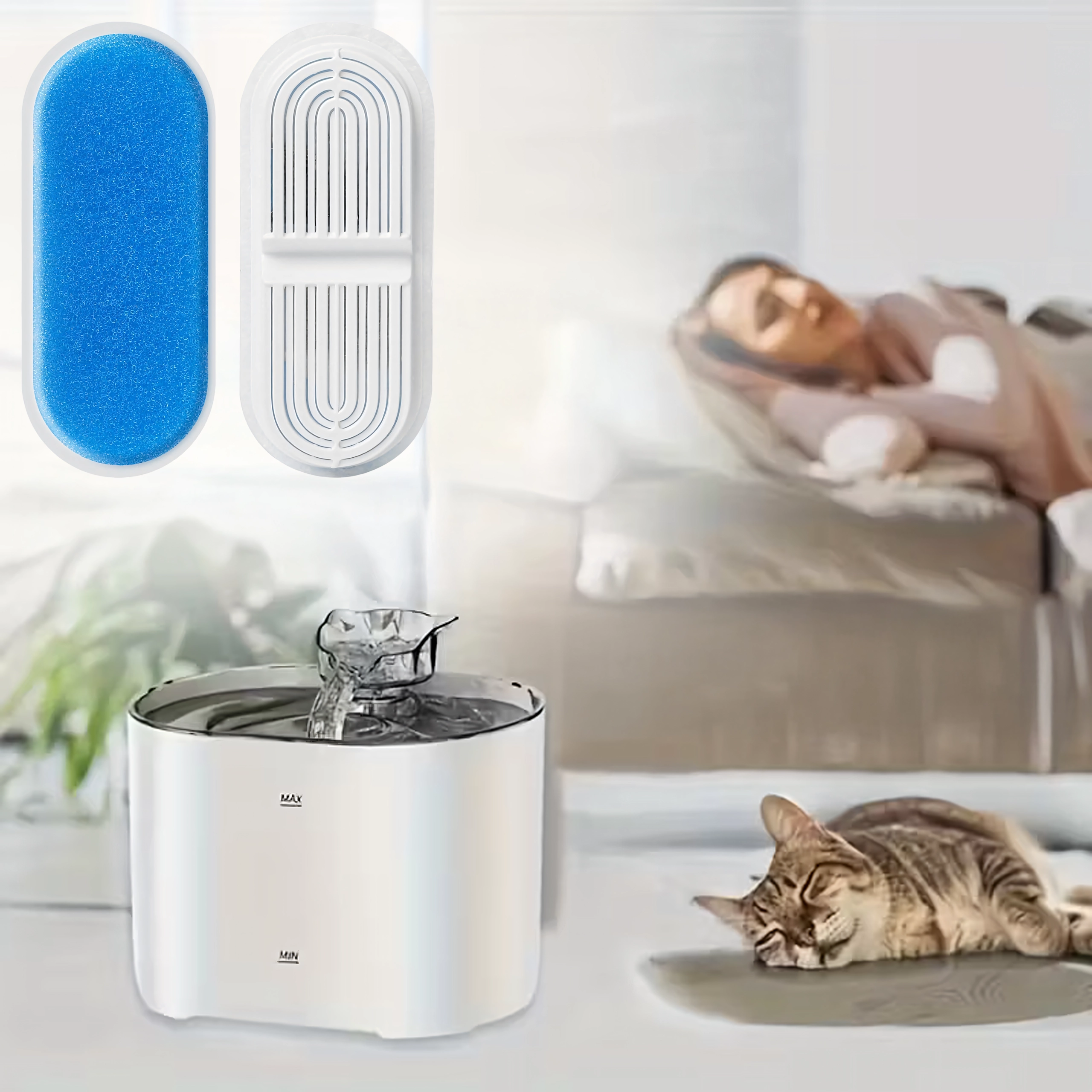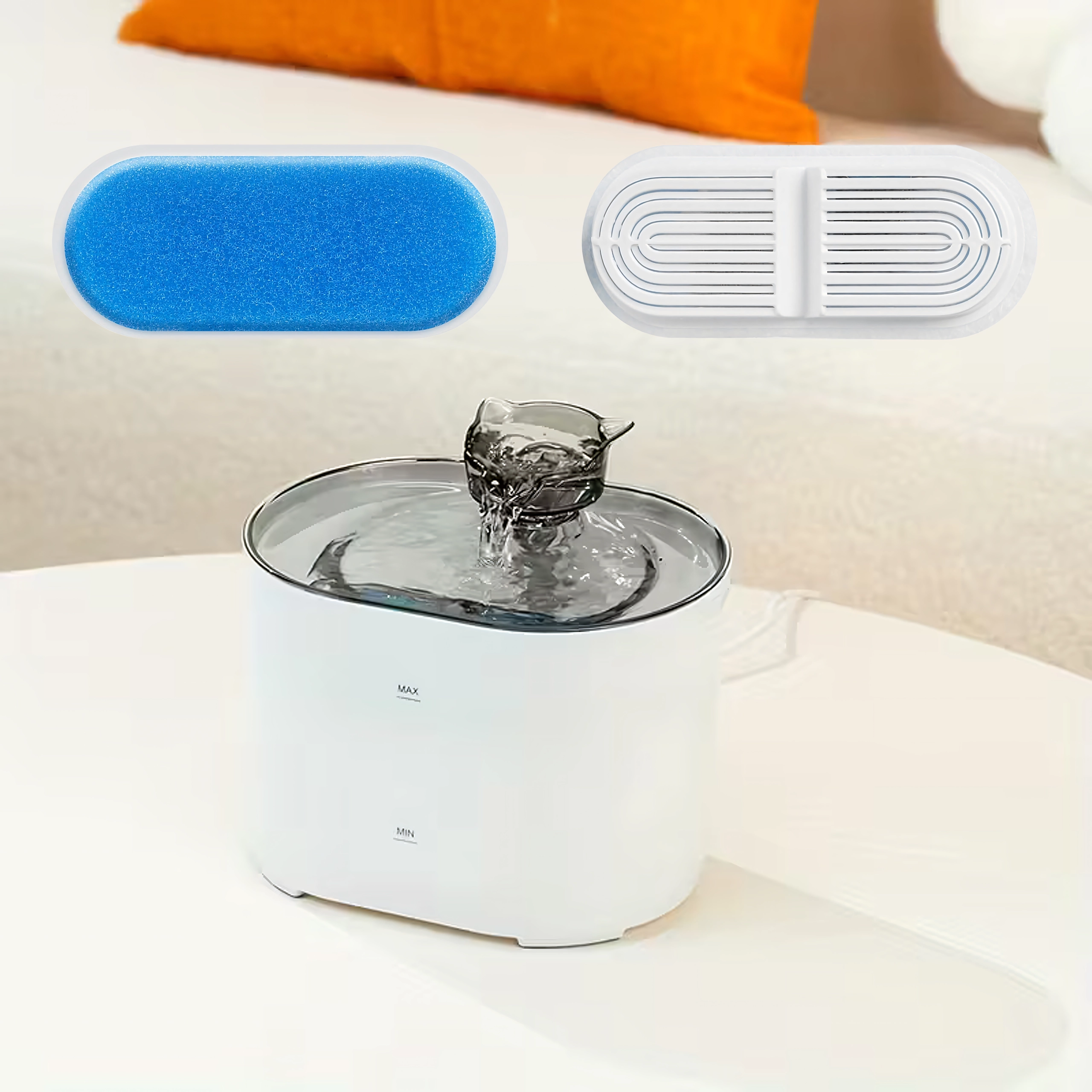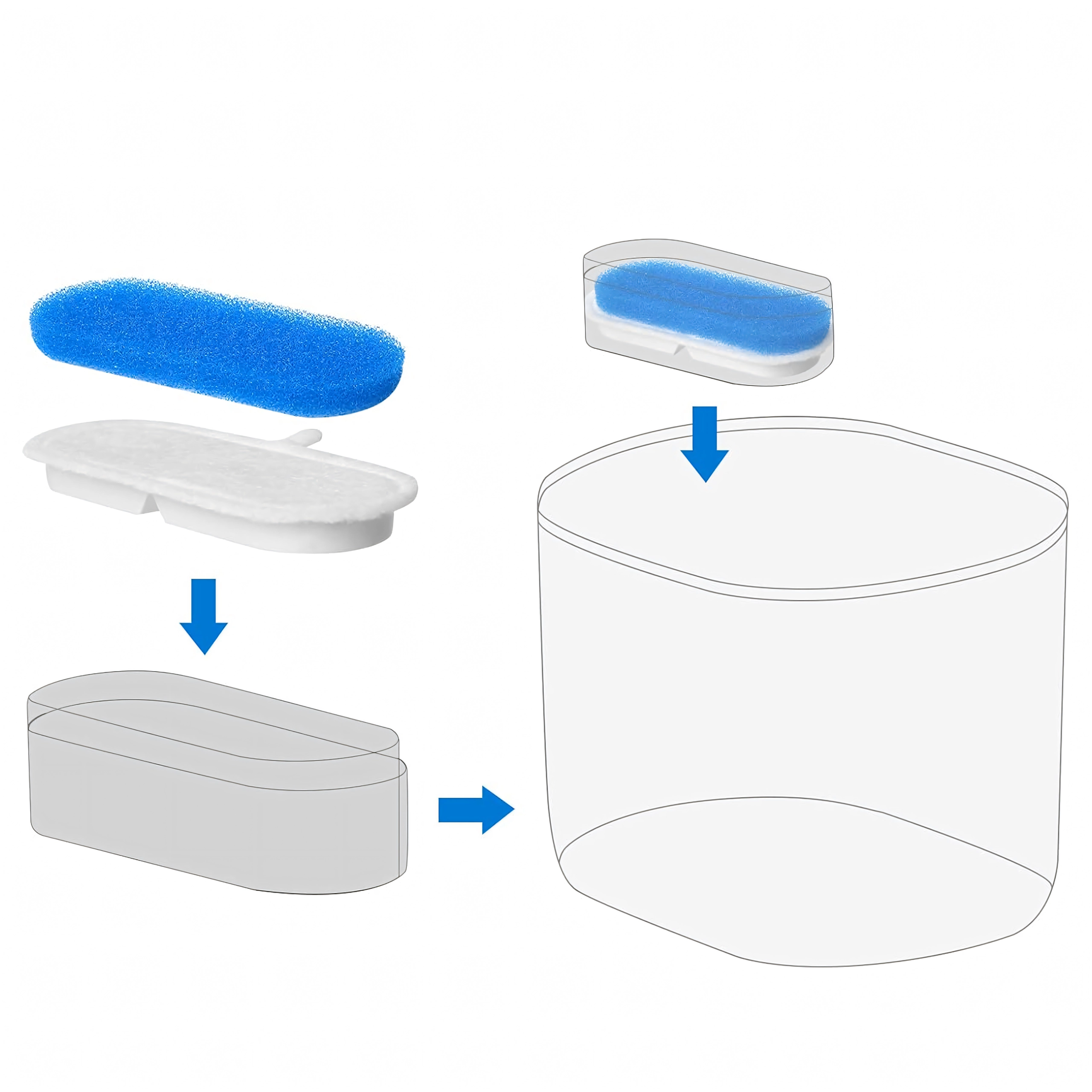 Kombinacja piankowego prefiltra i drobnej wkładki filtracyjnej skutecznie wychwytuje sierść i drobne cząstki, dzięki czemu pupil pije czystszą i smaczniejszą wodę.
