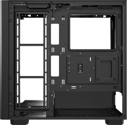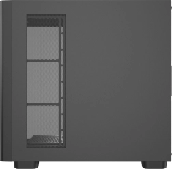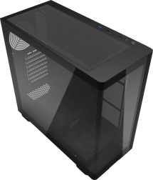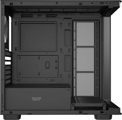 DarkFlash DS900G wyróżnia się panoramicznym panelem bocznym z hartowanego szkła, który elegancko eksponuje komponenty i podświetlenie RGB. Korpus został starannie zaprojektowany pod optymalny przepływ powietrza i łatwą instalację podzespołów, w tym kart graficznych o długości do 425 mm oraz chłodzeń CPU do 170 mm.