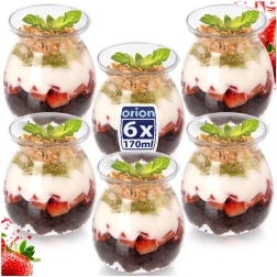 Stylowy zestaw sześciu przezroczystych kubeczków o pojemności 160 ml jest idealny do serwowania jogurtów, musów, panna cotty, tiramisu oraz słonych przekąsek. Dzięki minimalistycznemu kształtowi i przezroczystemu wykonaniu pięknie wyeksponujesz warstwy deserów, sałatki owocowe i mini porcje. Kubeczki są wielokrotnego użytku i odporne do 60 °C, doskonałe na przyjęcia, bankiety i catering.
