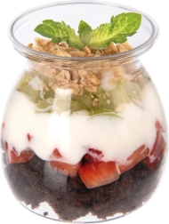 Serwuj desery i przekąski efektownie i higienicznie w eleganckich kubeczkach o pojemności 160 ml. Przezroczyste ścianki podkreślą atrakcyjne warstwowanie jogurtu, owoców, chrupiącej granoli i kremów, natychmiast dodając stołowi odświętnego charakteru.