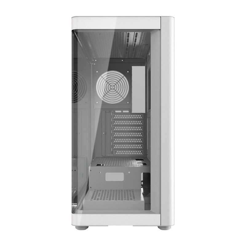 Elegancka obudowa mid‑tower DarkFlash DS900G w kolorze białym oferuje topowe chłodzenie, panoramiczne hartowane szkło oraz wszechstronną kompatybilność z ATX/Micro‑ATX/ITX. Wspiera karty graficzne do 425 mm, chłodzenia CPU do 170 mm, do 10× wentylatorów 120 mm oraz radiatory do 360 mm. Na pokładzie magnetyczne filtry przeciwkurzowe, 7 slotów PCIe i praktyczny przedni panel I/O z USB 3.0.