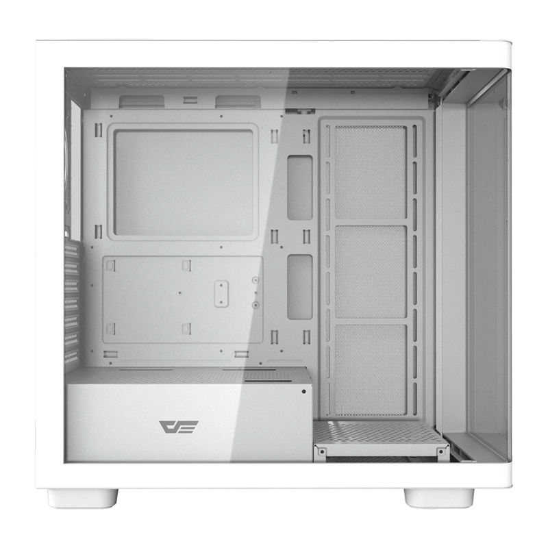 DarkFlash DS900G to nowoczesna obudowa dla graczy i twórców, którzy cenią czysty design i znakomity przepływ powietrza. Zakrzywiony panel boczny z hartowanego szkła zapewnia panoramiczny widok na komponenty i podświetlenie, a przemyślany obieg powietrza utrzymuje niskie temperatury nawet w wydajnych zestawach.