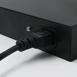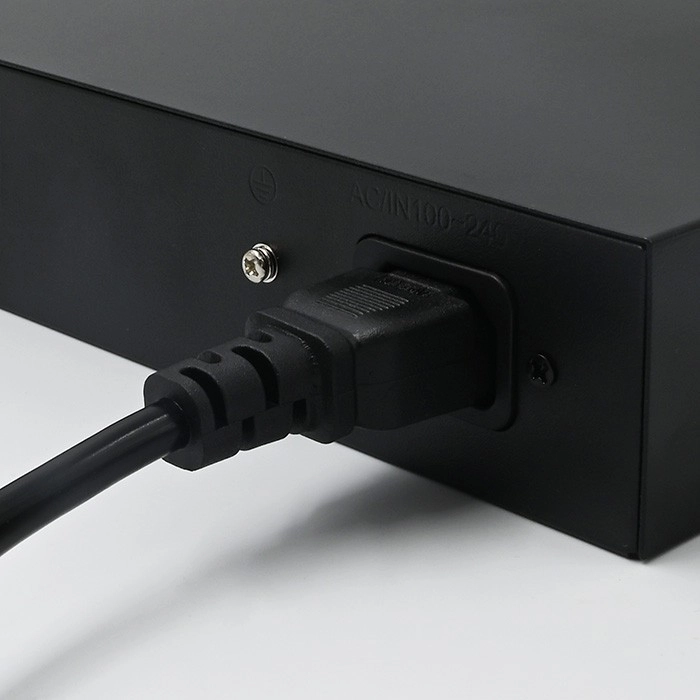Dzięki standardowi IEEE 802.3af zapewnia do 15,4 W na port (łącznie 65 W), automatycznie rozpoznaje urządzenia PoE i zapewnia bezpieczne zasilanie. Metalowa konstrukcja skutecznie odprowadza ciepło, jest odporna na zakłócenia i wraz z pasywnym chłodzeniem gwarantuje cichą i stabilną pracę.