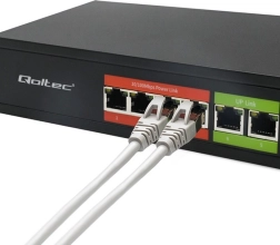- 4× RJ45 PoE 10/100 Mb/s do zasilania i transmisji danych jednym kablem