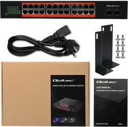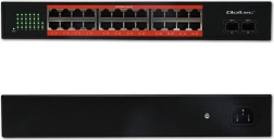 Rozszerz swoją sieć łatwo i bez kompromisów. Ten gigabitowy przełącznik łączy wysoką wydajność z prostą instalacją: 24 porty PoE RJ45 zasilają kompatybilne urządzenia (kamery, punkty dostępowe, VoIP) i równocześnie przesyłają dane z prędkością do 1 Gb/s. Dwa porty SFP umożliwiają optyczne połączenia na dłuższych odcinkach lub między budynkami, zapewniając elastyczne i skalowalne wdrożenia.