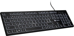 NATEC Herring Glow to pełnowymiarowa przewodowa klawiatura z niskoprofilowymi klawiszami chiclet inspirowanymi laptopami. Zapewnia cichą i precyzyjną reakcję, dzięki czemu łatwiej skupić się na pracy, oraz równomierne białe podświetlenie dla bezbłędnej widoczności w ciemności. Trwała powłoka UV chroni legendy przed ścieraniem, więc klawisze pozostają czytelne przez lata.