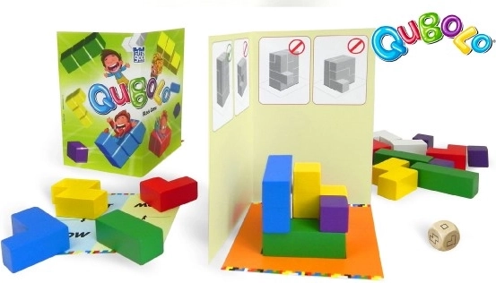Doświadcz zabawy z grą Qubolo, w której gracze budują wieże z drewnianych elementów. Każdy gracz wybiera przeciwnikowi element, z którym ten musi budować w następnej turze. Celem jest ukończenie wieży wcześniej niż przeciwnik.