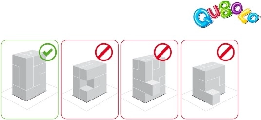 Proste zasady i mnóstwo zabawy sprawiają, że Qubolo to idealna gra dla dzieci i dorosłych. Przeznaczona dla 1–2 graczy, ewentualnie do 4, jeśli masz dwa zestawy klocków. Przybliżony czas rozgrywki to 10 minut.