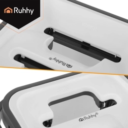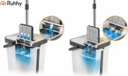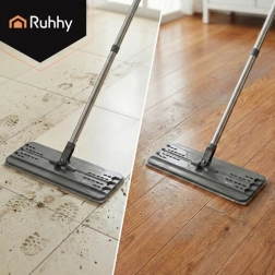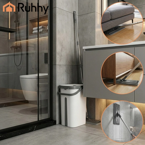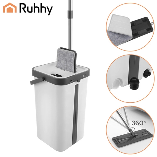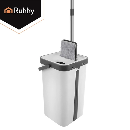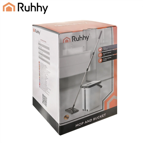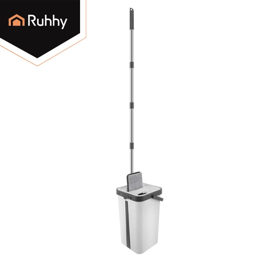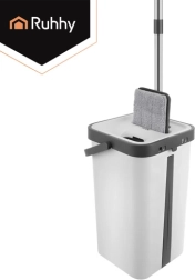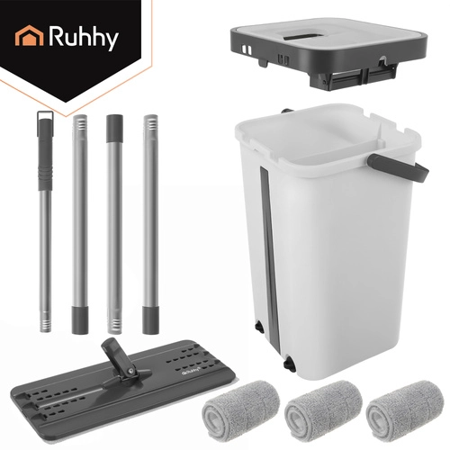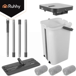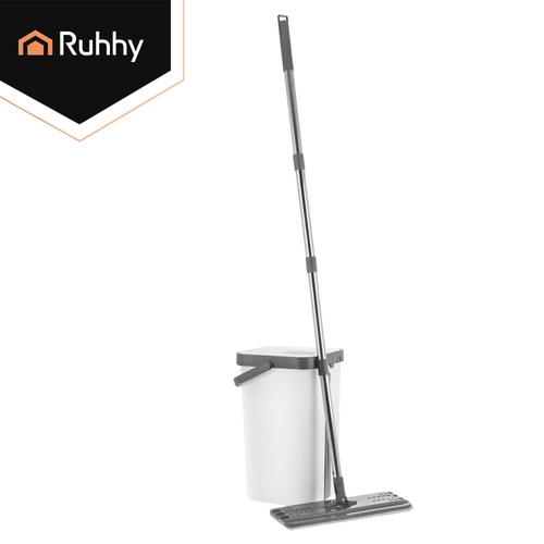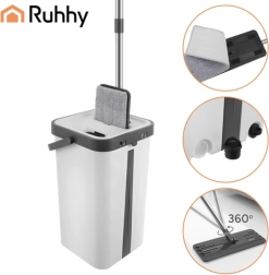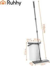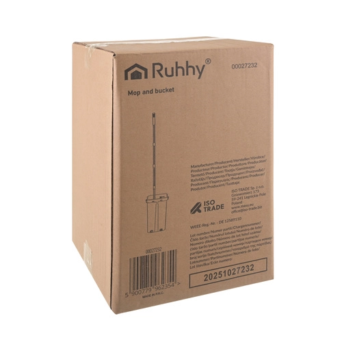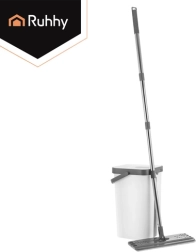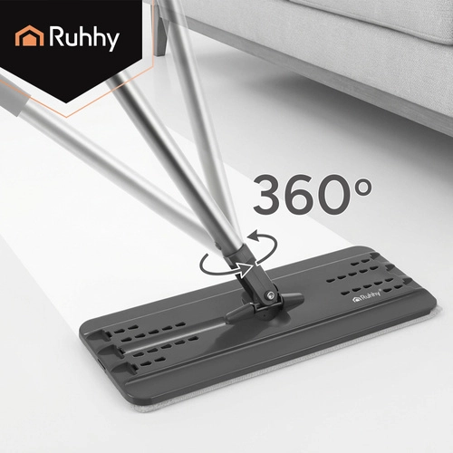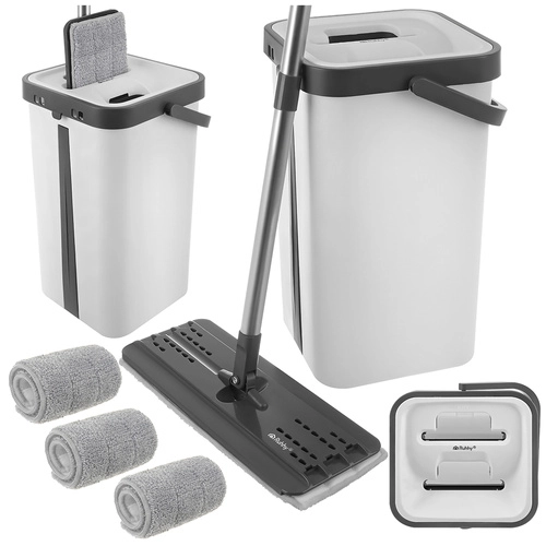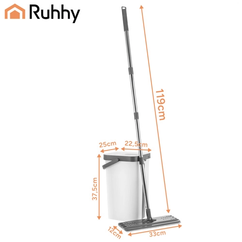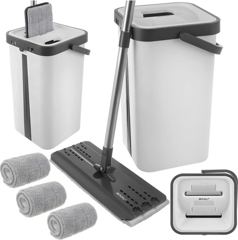 Praktyczny płaski mop RUHHY z dwukomorowym wiadrem 11 l zapewni ci higieniczne mycie zawsze czystą wodą. Dzięki bezdotykowemu wyciskaniu dłonie pozostają suche, a podłoga bez smug. Obrotowa głowica 360° sięga pod meble i w kąty, a 3 szybko schnące nakładki umożliwiają nieprzerwane sprzątanie.