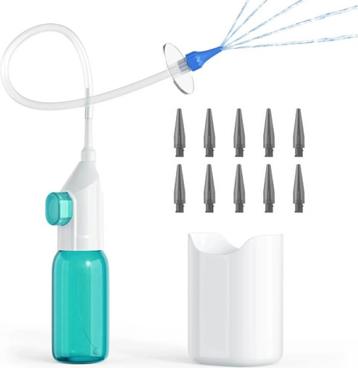 W zestawie znajduje się wszystko, czego potrzebujesz do higienicznego użytkowania – jednorazowe końcówki dla różnych użytkowników oraz praktyczny pojemnik do zbierania zużytej wody. Dzięki kompaktowym wymiarom irygator idealnie nadaje się do użytku domowego i w podróży.