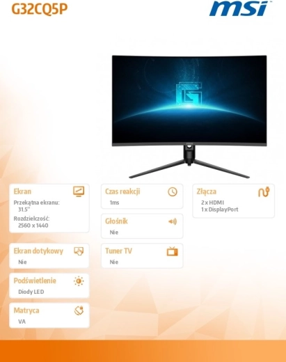 Ciesz się płynną rozgrywką i ostrym obrazem z 31,5" zakrzywionym monitorem MSI G32CQ5P. Oferuje rozdzielczość WQHD, szybkie odświeżanie 170 Hz, panel VA z głęboką czernią i imponującym kontrastem. Dzięki zakrzywieniu wciąga w akcję, a szybka reakcja i płynność ucieszą każdego gracza.