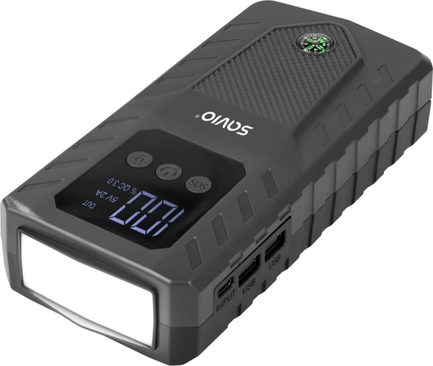 Zintegrowany powerbank 10 000 mAh z dwoma portami USB-A (5 V/1 A i 5 V/2 A) szybko naładuje telefon, tablet lub nawigację. Bezpieczeństwo podczas rozruchu zapewniają inteligentne kleszcze Smart Clamp z ochroną przed odwrotną polaryzacją i zwarciem. Do tego latarka LED, kompas i wytrzymała konstrukcja do wymagających warunków.