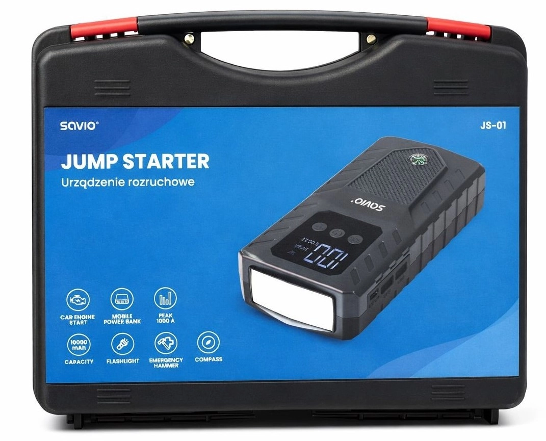 JS-01 to niezawodny towarzysz na co dzień i w sytuacjach awaryjnych. Ze znamionowym prądem rozruchowym 500 A i szczytowym do 1000 A uruchomi większość samochodów osobowych i motocykli z instalacją 12 V. Działa w temperaturach od -20 °C do +60 °C, więc nie zawiedzie ani na mrozie, ani w upale.
