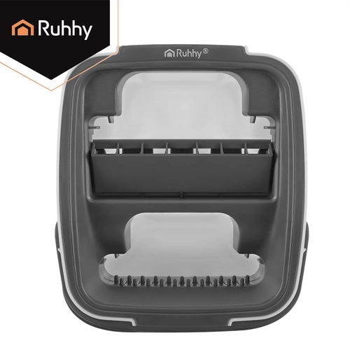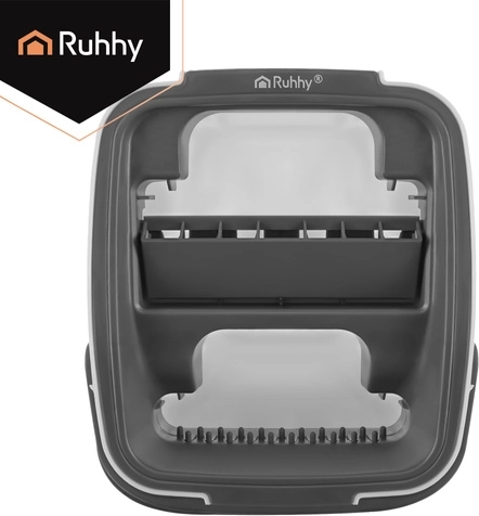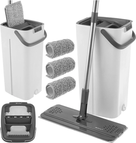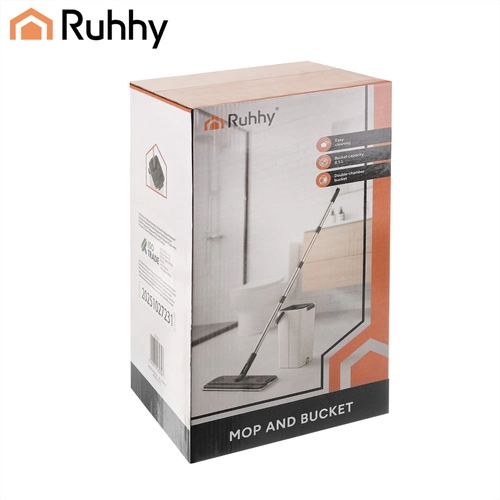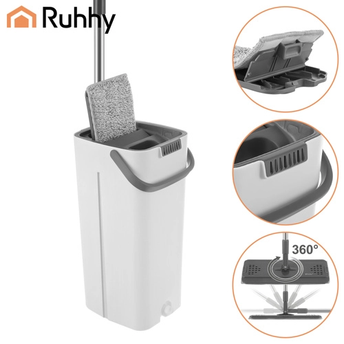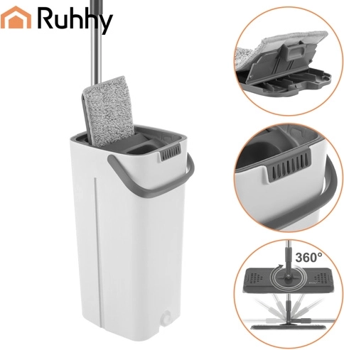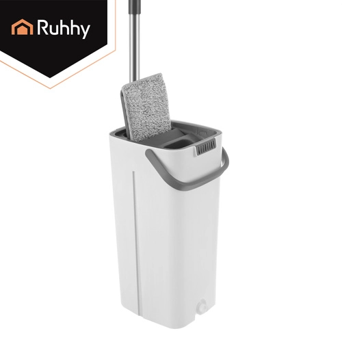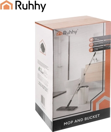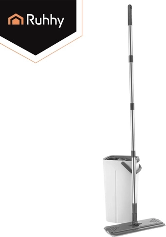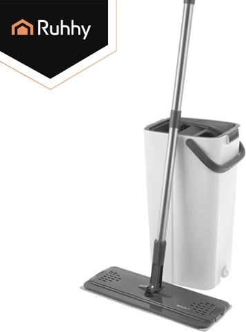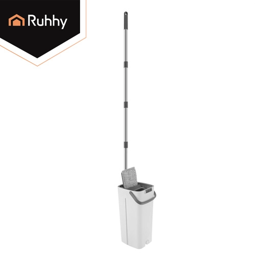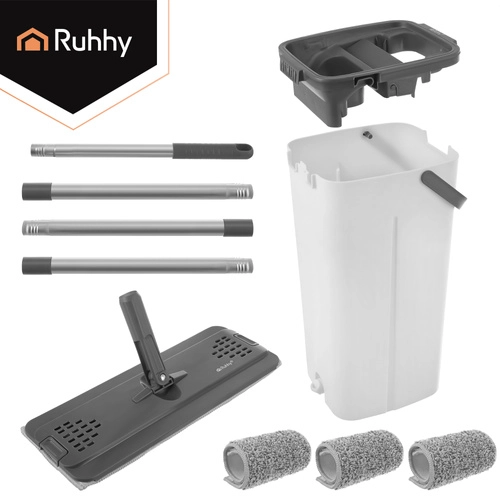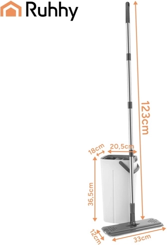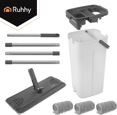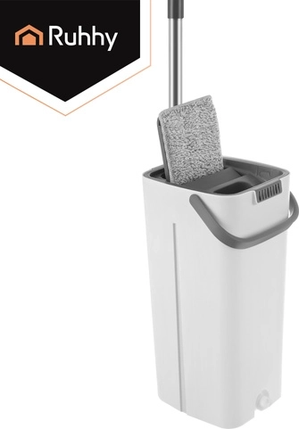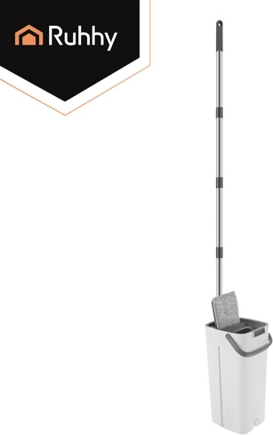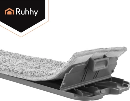 Koniec z myciem w mętnej wodzie. Dwukomorowy system RUHHY gwarantuje, że podłogę zawsze myjesz świeżą, czystą wodą, podczas gdy zanieczyszczenia pozostają w oddzielnej komorze. Zintegrowany bezdotykowy mechanizm wyżymania szybko usuwa nadmiar wody oraz włosy i kurz z nakładki, dzięki czemu podłoga schnie szybciej i bez smug.