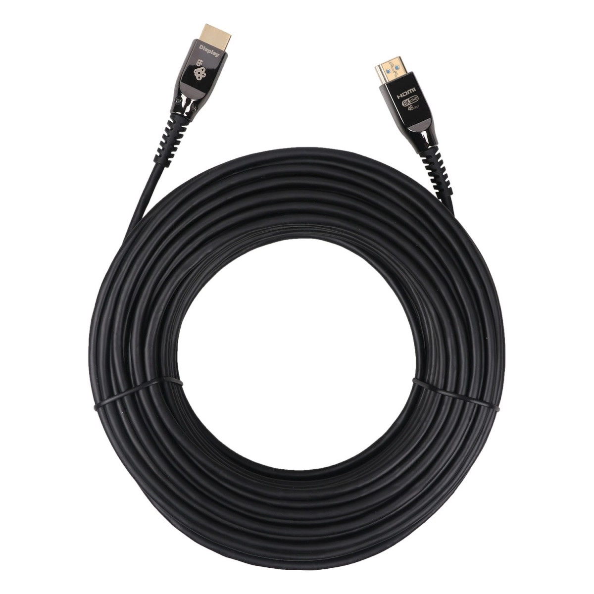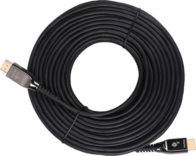 Dzięki technologii optycznej (AOC) eliminuje zakłócenia i tłumienie typowe dla długich kabli miedzianych. Złącza z 24‑karatowym pozłaceniem gwarantują długą żywotność i doskonałą przewodność. Kabel jest gotowy na przyszłe standardy i kompatybilny z szeroką gamą urządzeń – od komputerów i laptopów, przez odtwarzacze i konsole, po telewizory i projektory.