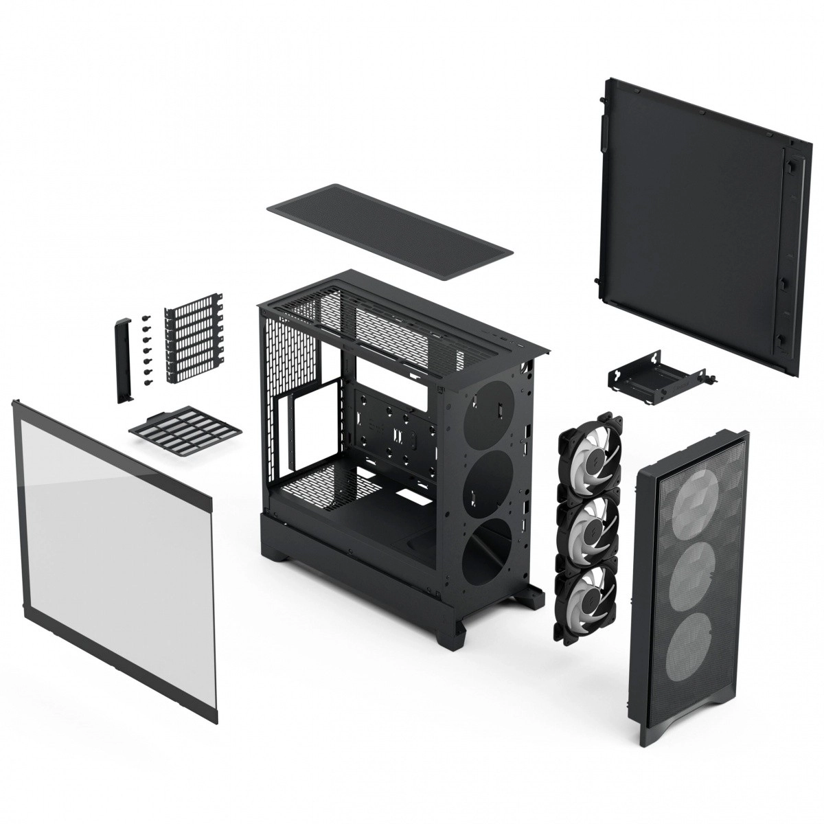 Drobna przednia siatka oraz trzy fabrycznie zamontowane wentylatory ze sfazowanymi łopatkami zapewniają silny, równomierny przepływ powietrza i niższe temperatury komponentów.