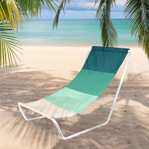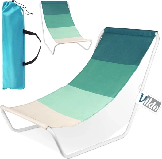 Ciesz się wygodą gdziekolwiek dzięki temu lekkiemu i składanemu leżakowi plażowemu w zielonych odcieniach. Stabilna metalowa konstrukcja w białym kolorze, wytrzymała tkanina poliestrowa oraz łatwe przenoszenie z dołączoną torbą sprawiają, że leżak to idealny wybór na plażę, do ogrodu i na balkon. Maksymalne obciążenie 90 kg, wymiary siedziska 86 × 51,5 cm, szerokość tkaniny 44,5 cm.