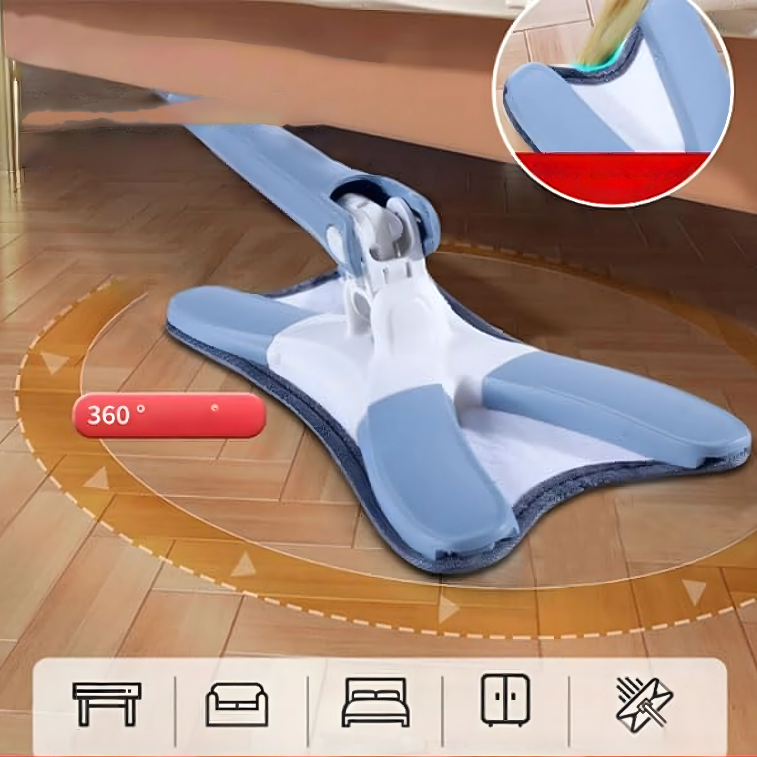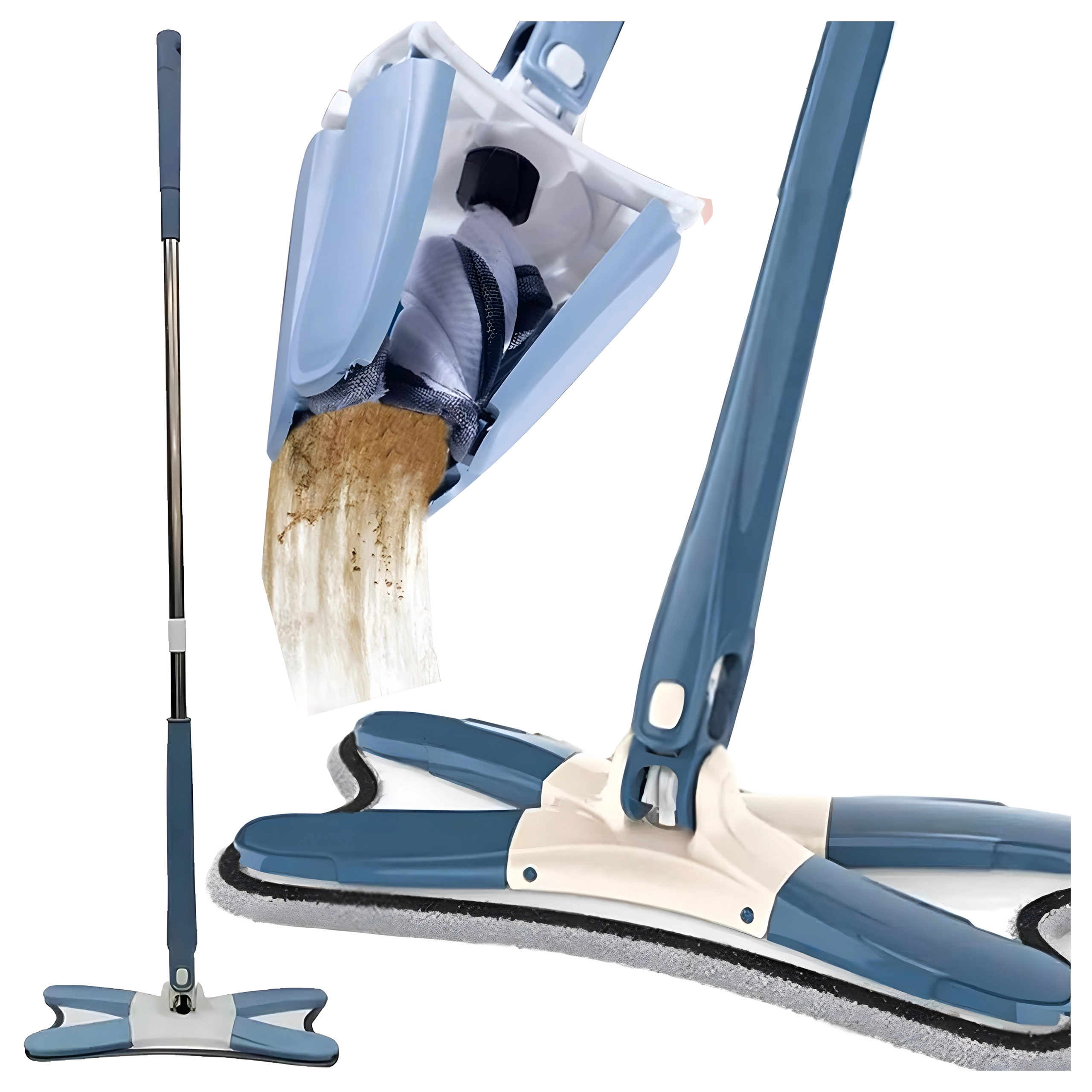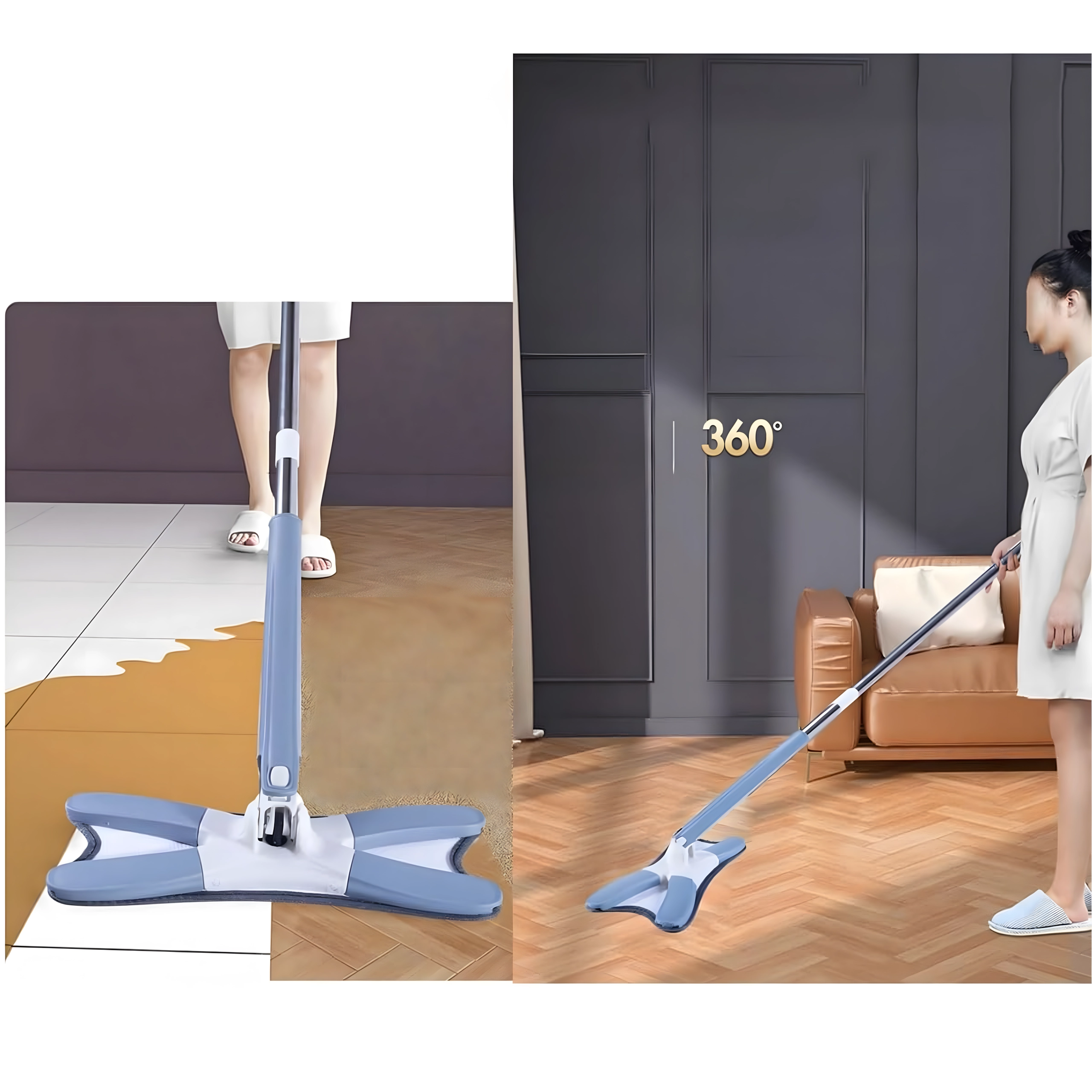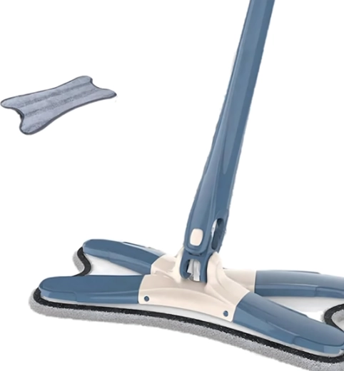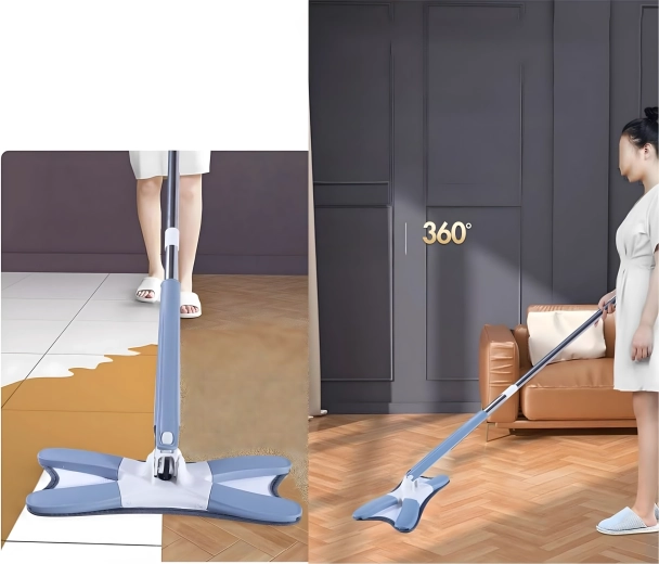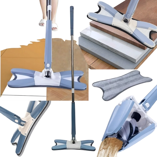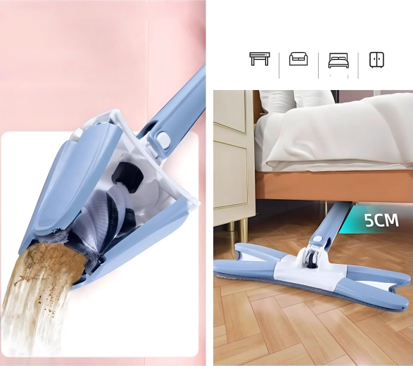 Płaski mop ze składaną głowicą X i mechanizmem samowyciskania
