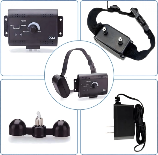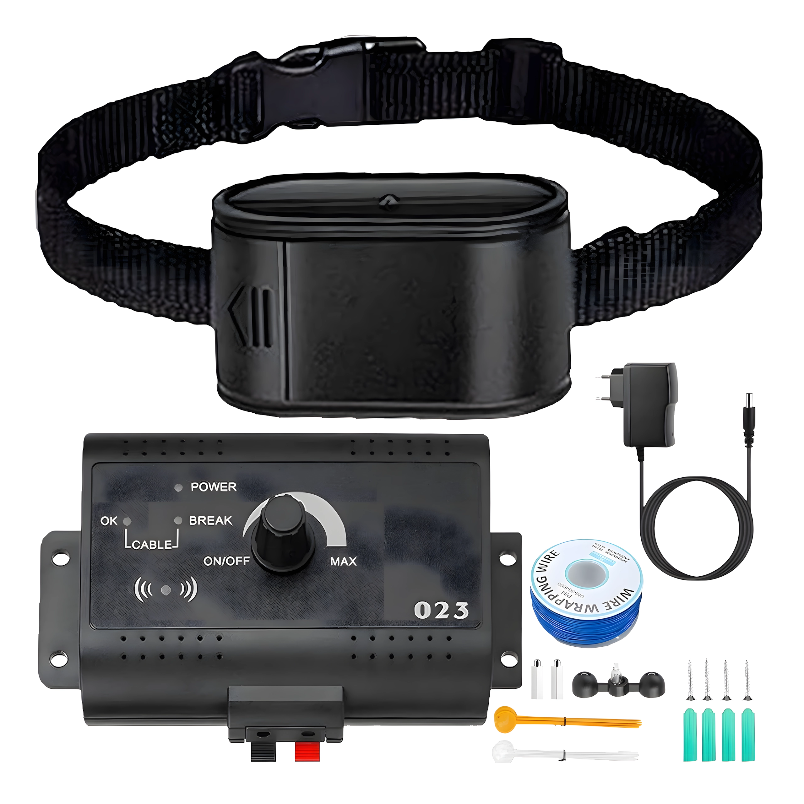 - Kompletny zestaw z obrożą, jednostką sterującą i akcesoriami montażowymi