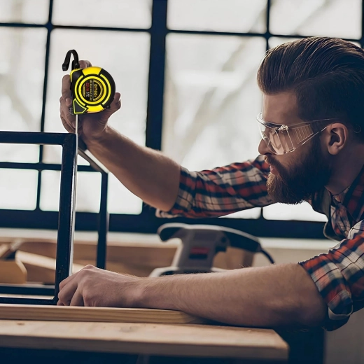 Ta solidna zwijana miara jest idealna do codziennych pomiarów przy pracach hobbystycznych i profesjonalnych. Stalowa taśma z wyraźnymi podziałkami i szerokością 19 mm zapewnia dobrą czytelność oraz stabilność przy dłuższych dystansach. Gumowana obudowa gwarantuje pewny chwyt i chroni narzędzie przed uszkodzeniami.