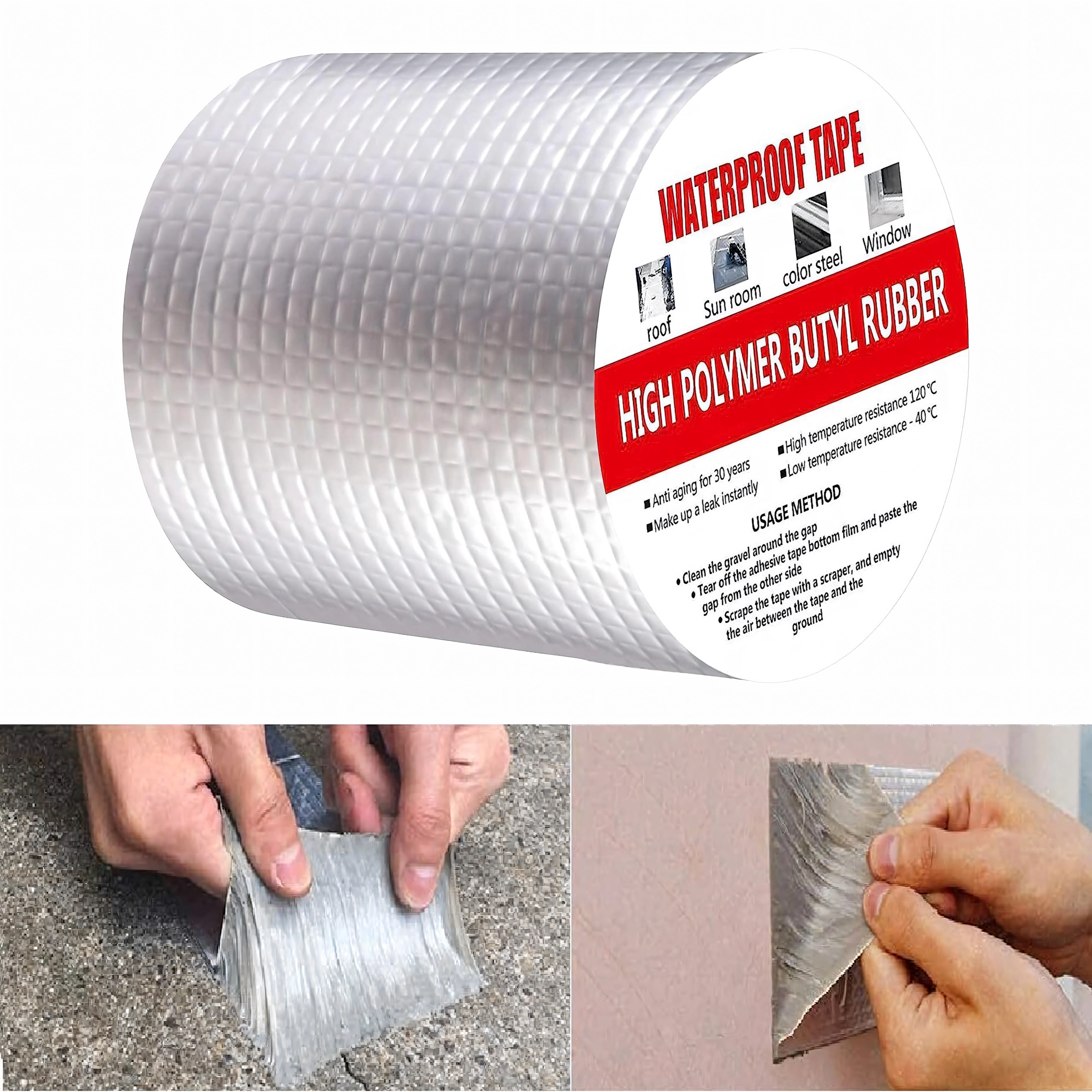 Doskonała do dachów, kominów, okien, rur, przyczep kempingowych, konstrukcji blaszanych i innych miejsc, gdzie potrzebne jest szybkie i trwałe uszczelnienie. Warstwa aluminiowa zwiększa odporność na promieniowanie UV, temperaturę i warunki atmosferyczne, a rdzeń butylowy zapewnia długotrwałą elastyczność i szczelność.