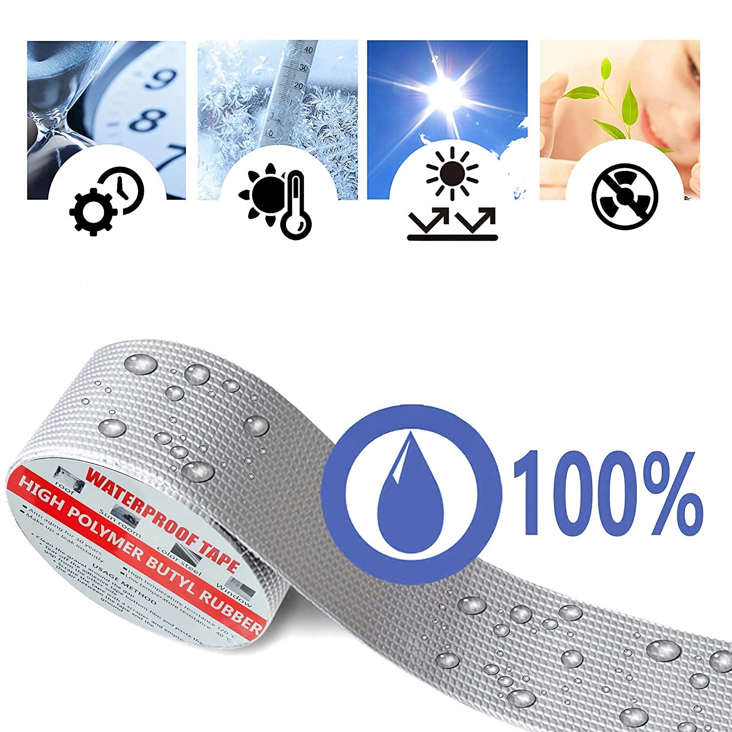 Aluminiowa warstwa chroni przed promieniowaniem UV i wahaniami temperatury, dzięki czemu taśma wytrzymuje deszcz, mróz i upał bez utraty szczelności.