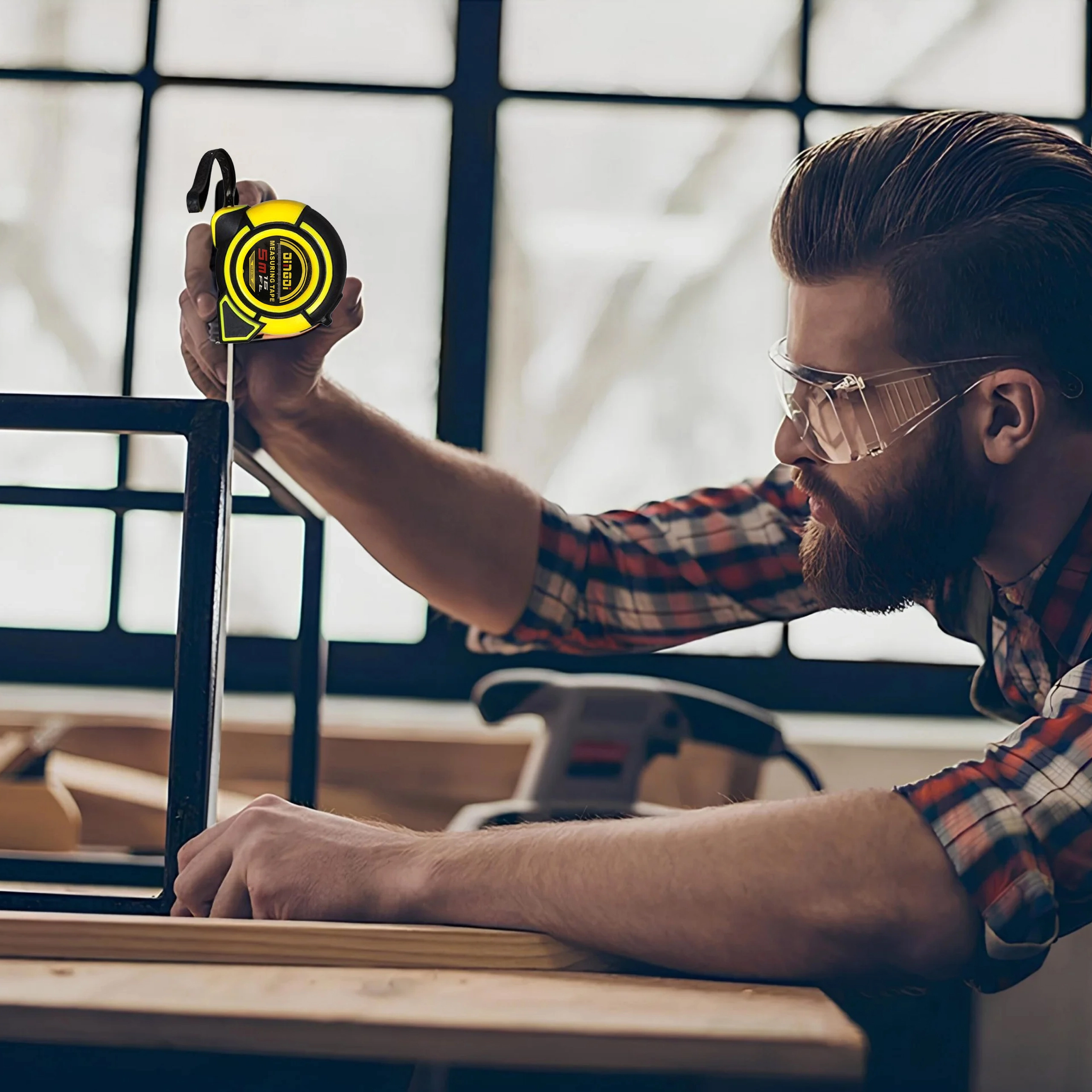 Dzięki praktycznej blokadzie utrzymasz taśmę w wybranej pozycji bez niechcianego zwijania, a hak końcowy pewnie opiera się o krawędzie, zwiększając dokładność pomiarów. Nie zabrakło metalowego klipsa do mocowania na pasku oraz pętli ułatwiającej przenoszenie.