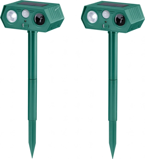 Chroń ogród bez chemii: ten solarny ultradźwiękowy odstraszacz zwierząt z łatwą instalacją w ziemi za pomocą grotu skutecznie odstrasza koty, psy, lisy, kuny, ptaki oraz gryzonie. Zintegrowany czujnik ruchu PIR aktywuje ultradźwięki oraz ostrzegawcze błyski LED, a odporna konstrukcja na każdą pogodę i zasilanie z panelu solarnego zapewniają bezobsługowe działanie. W zestawie 2 sztuki do pokrycia większej powierzchni.